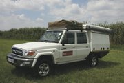 Ein robuster Allrad-Camper auch für schwieriges Gelände. Dank zwei Dachzelten geeignet für bis zu 4 Personen.