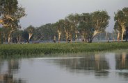Während einer Bootsfahrt auf der Yellow Waters Lagune (optional) sind unzählige Vögel und - mit etwas Glück - große Salzwasserkrokodile zu beobachten. Sehr interessant sind auch die Malereien am Nourlangie Rock.