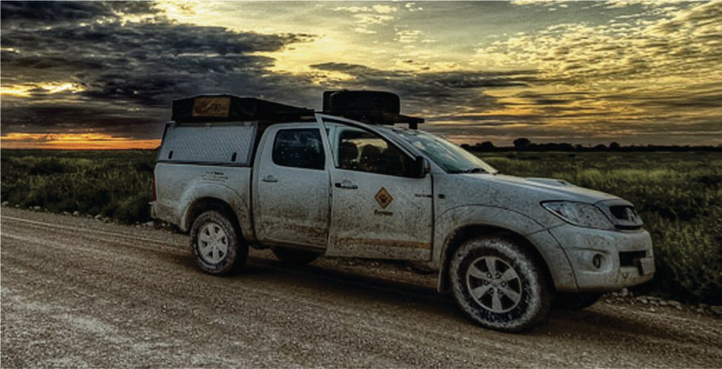 Bushlore Toyota Hilux Double Cab 4x4 mit Dachzelt inklusive Campingausrüstung und Standardversicherung (mit Selbstbehalt lt. Mietbedingungen); Übernachtung / Campingstellplätze; Verpflegung lt. Programm (F=Frühstück).