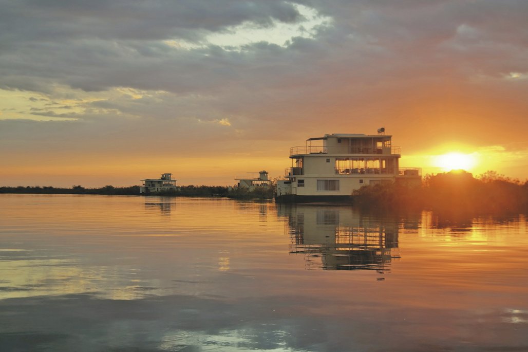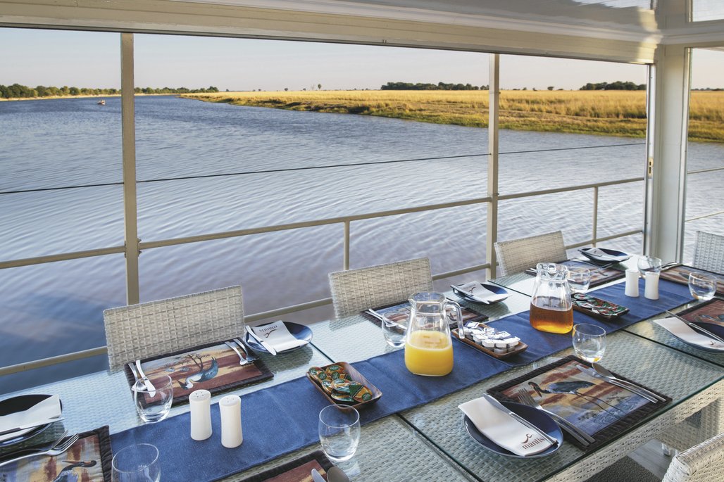 Ein besonderes und ausgesprochen reizvolles Angebot auf dem Chobe Fluss: eine gemütliche Fluss-Safari. Für Sie bedeutet das: nur einmal Koffer aus- und einpacken, schon beim Frühstück zahlreiche Wildtiere am Ufer beobachten, mit dem Beiboot stille Lagunen und Seitenarme erkunden, Elefanten hautnah beim Durchschwimmen der Wasserläufe erleben oder die Angel nach Tigerfisch oder Brasse auswerfen. Während andere Reisende bei Sonnenuntergang ins Hotel zurückkehren, genießen Sie als Kreuzfahrer Ihren Sundowner entspannt an Deck – mitten im Wildgebiet.