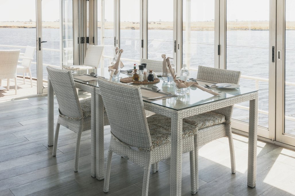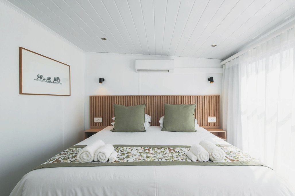 Erleben Sie den Komfort des flexiblen Aktivitätenplans, der es Ihnen und den anderen Gästen an Bord ermöglicht, täglich zwei Aktivitäten nach Ihrem Zeitplan zu wählen. Zu den Optionen gehören: geführte Wildbeobachtungstouren auf dem Wasser, Vogelbeobachtungen, Angeln, kulturelle Touren und Fotosafaris. Beginnen Sie Ihren Tag mit einer Tasse Kaffee oder Tee, die ab 6.00 Uhr auf dem Oberdeck serviert wird. Die frühen Morgenstunden eignen sich perfekt für Aktivitäten wie Tigerfischen oder Vogelbeobachtungsausflüge. Zurück an Bord können Sie sich an einem reichhaltigen Buffetfrühstück stärken. Nach dem Frühstück tauchen Sie in die lokale Kultur ein, indem Sie an einer Dorfführung teilnehmen, gefolgt von einer landschaftlich reizvollen Wildbeobachtungsfahrt entlang des Chobe Nationalparks mit einem Beiboot. Genießen Sie ein köstliches Mittagessen an Bord und entspannen Sie am Pool oder vertiefen Sie sich in ein gutes Buch. Beenden Sie den Tag mit einem köstlichen Abendessen auf dem Oberdeck und genießen Sie die ruhige afrikanische Atmosphäre.