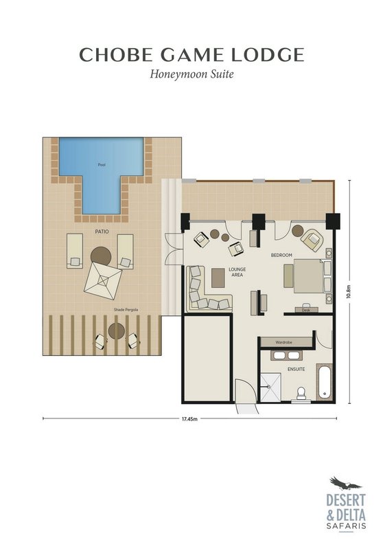 Die Chobe Game Lodge ist als ein Zufluchtsort der Ruhe und Privatsphäre gestaltet – ein Ort, an dem Entspannung mühelos ist und Sie Ihren eigenen Raum genießen können. Mit sechs komfortabel eingerichteten Aussichtsplattformen, einem Boma am Fluss, zwei Bars, sechs verschiedenen Lounges und vier Speisebereichen ist ein bequemer Stuhl oder Liegestuhl nie weit entfernt, jeder mit einem anderen Blick auf die Wildnis, die die Lodge umgibt. Ein großer Pool sorgt an heißen Nachmittagen für willkommene Abkühlung. Eingeschlossene Aktivitäten: Pirschfahrten, Bootsfahrten. Alle Boote und einige Safari-Fahrzeuge werden elektrisch betrieben.
