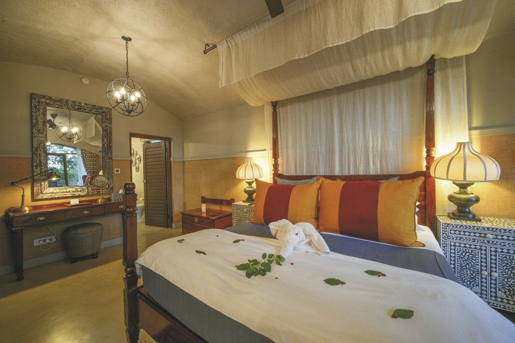 Alle 44 Zimmer, davon vier Suiten sind mit gewölbten Decken, eleganten Fensterbögen und mit geschmackvollen und handgefertigten Teakholzmöbeln eingerichtet. Sie verfügen alle über Bad/DU/WC, eine Klimaanlage, Deckenventilator, WLAN und Minibar sowie eine Terrasse bzw. Balkon mit Flussblick. Die Suiten verfügen zudem über einen privaten Plunge Pool sowie einen separaten Wohnbereich.