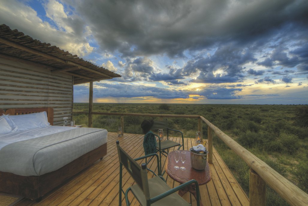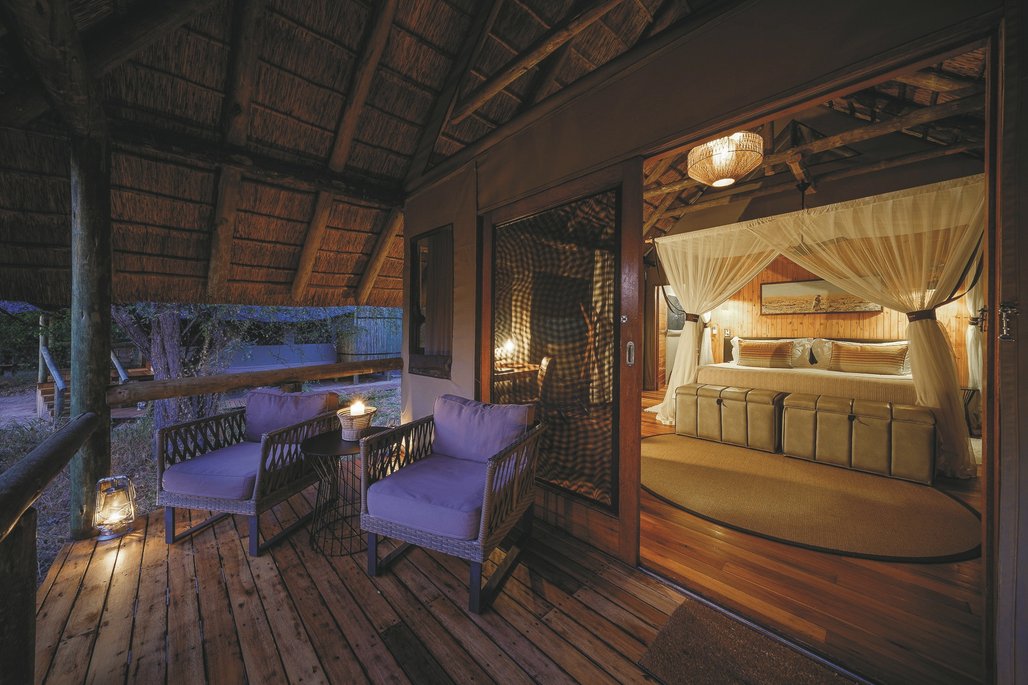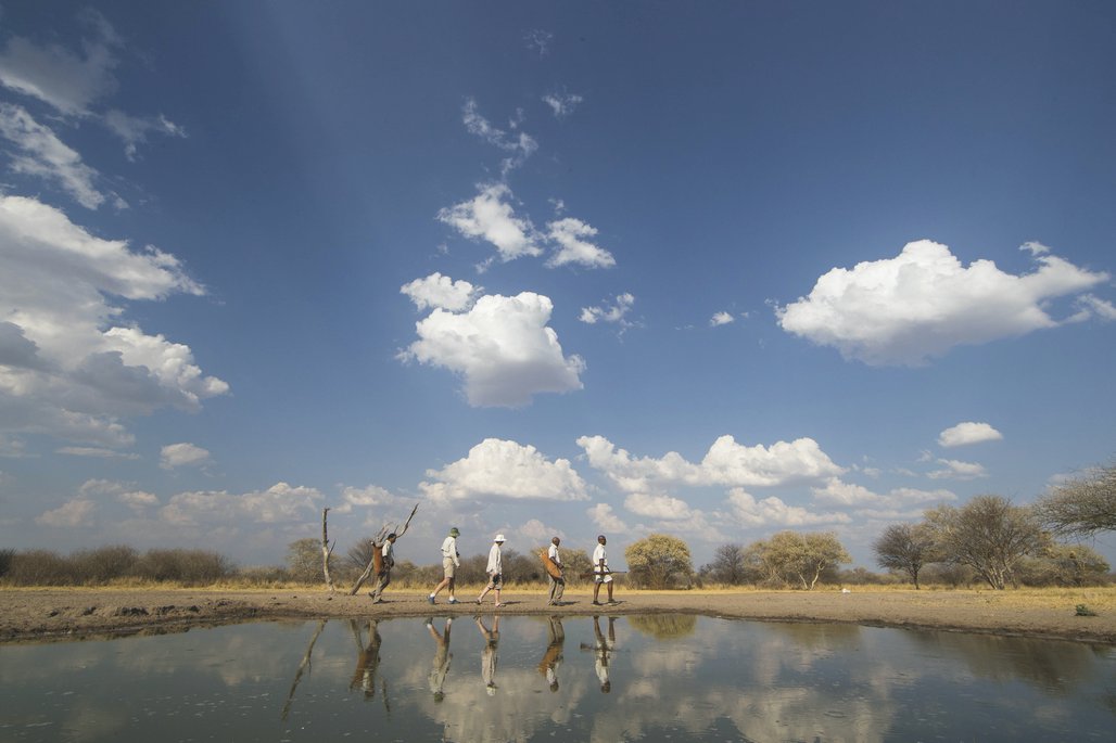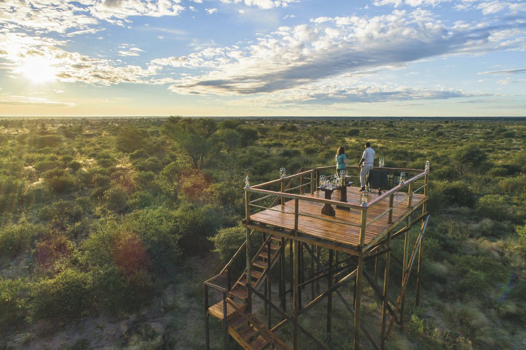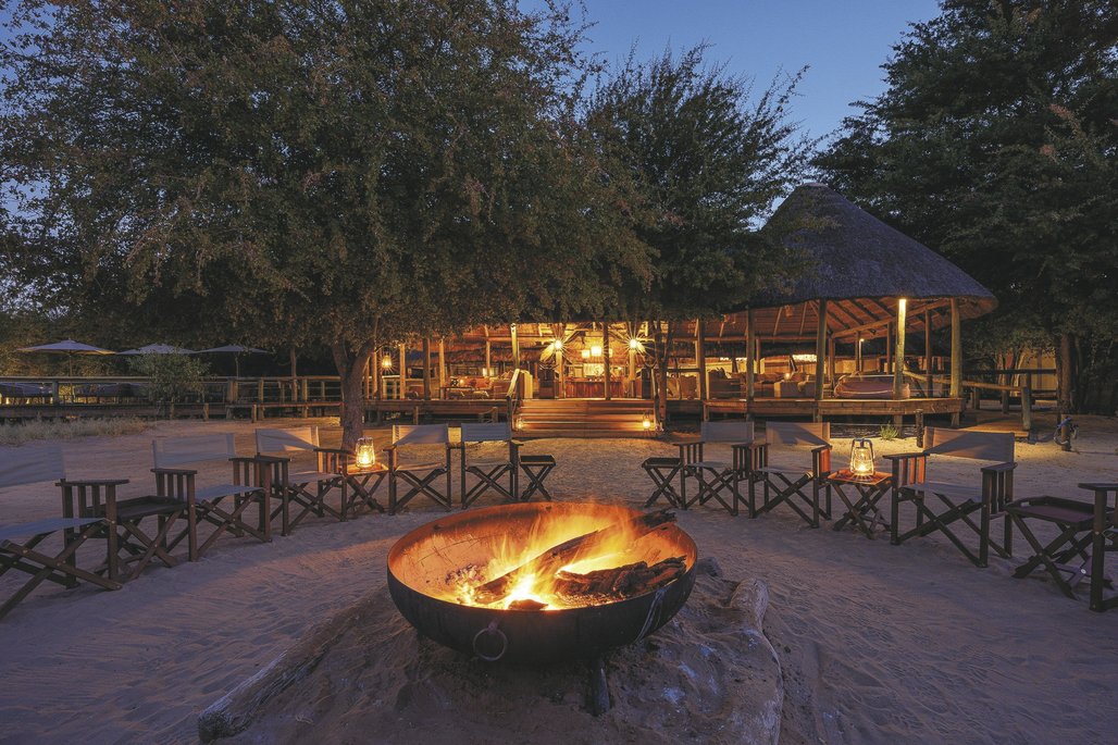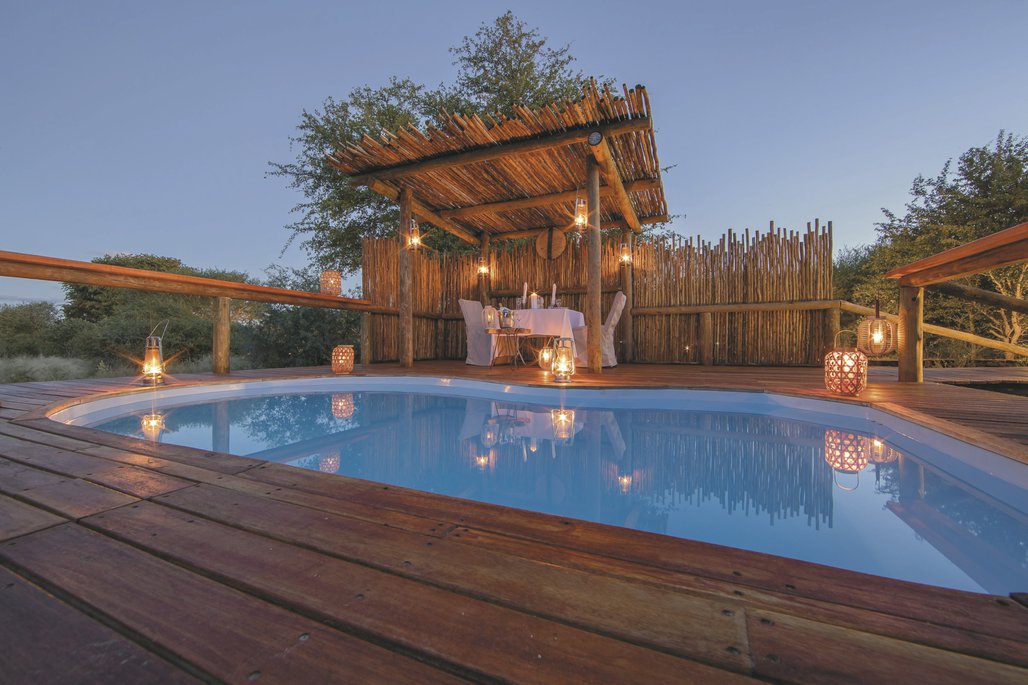 Der Hauptbereich von Dinaka erstreckt sich über erhöhte Plattformen und umfasst großzügige Sitz- und Essbereiche, eine gemütliche Bar sowie einen einladenden Pool – mit einem weiten Blick auf das nahegelegene Wasserloch, das regelmäßig Wildtiere anzieht. Im gesamten Reservat sorgen strategisch platzierte Verstecke und unterirdische Bunker an verschiedenen Wasserstellen für außergewöhnliche Möglichkeiten zur Wild- und Vogelbeobachtung – perfekt auch für Fotografen. Ein besonderes Highlight ist das Sleep Out Deck, das Gästen einen unvergesslichen Panoramablick und die einmalige Gelegenheit bietet, unter dem funkelnden afrikanischen Sternenhimmel zu übernachten. Eingeschlossene Aktivitäten: Wanderungen mit San-Buschmännern, Pirschfahrten.