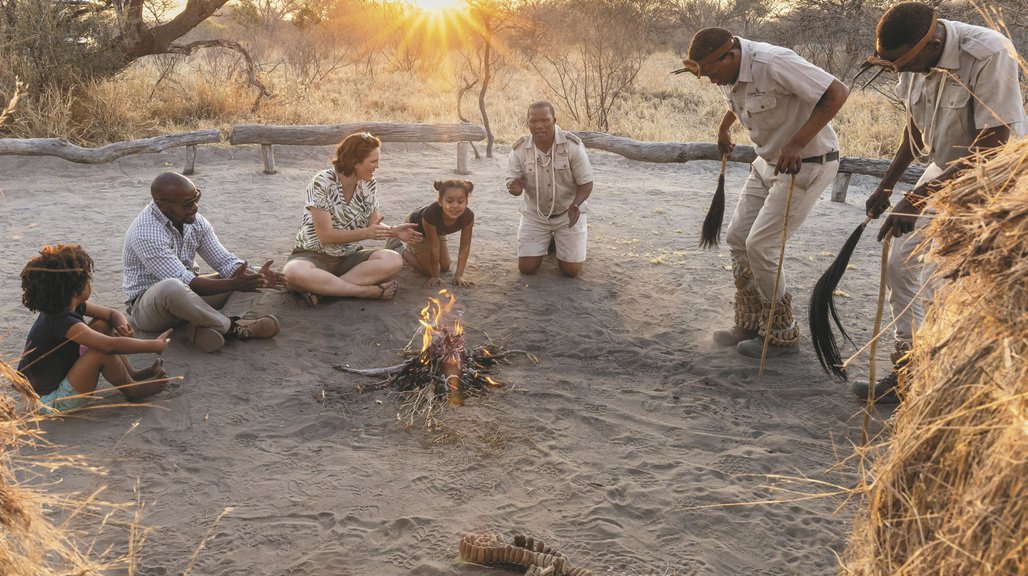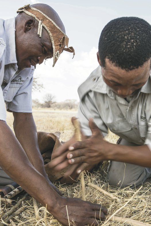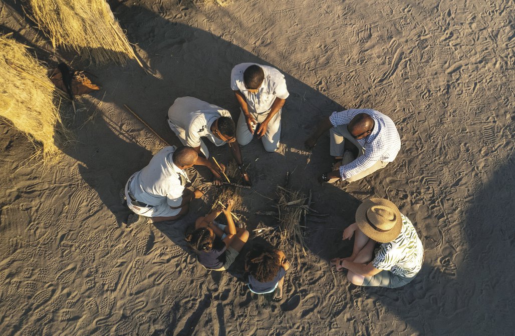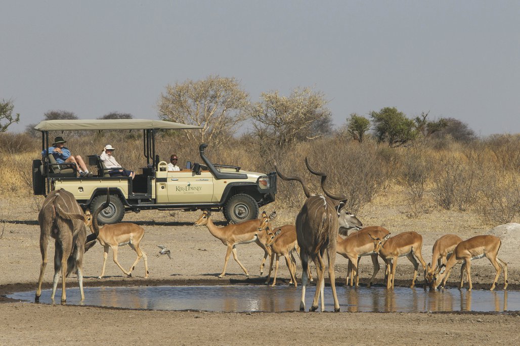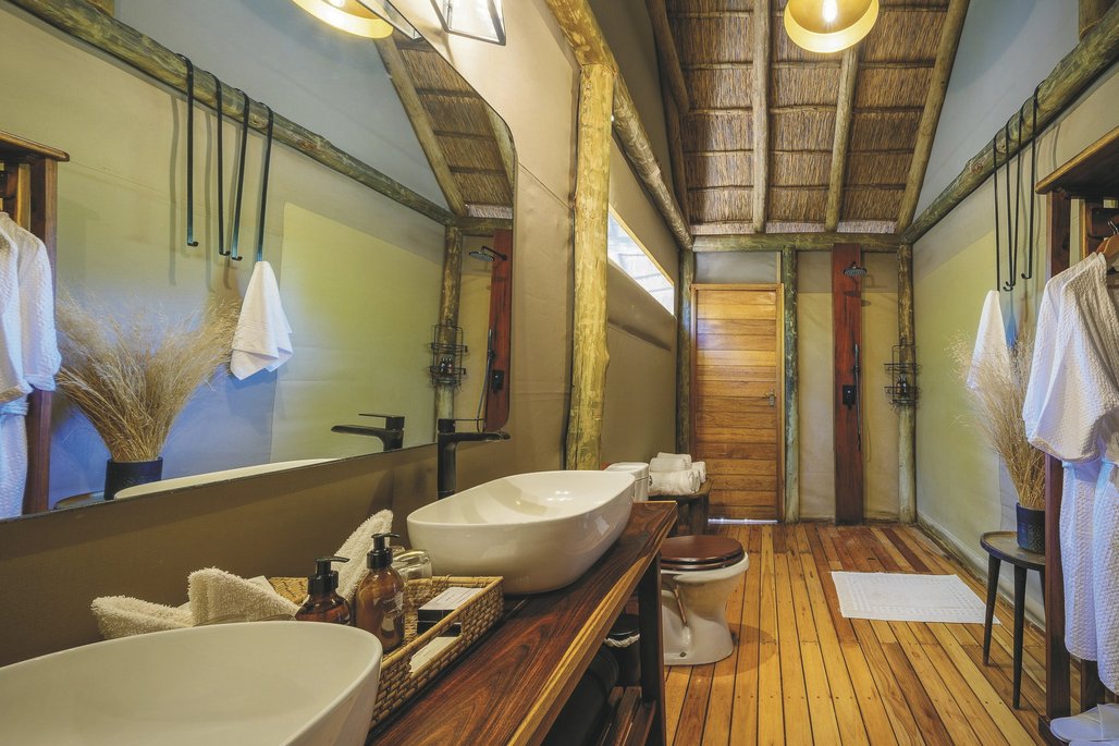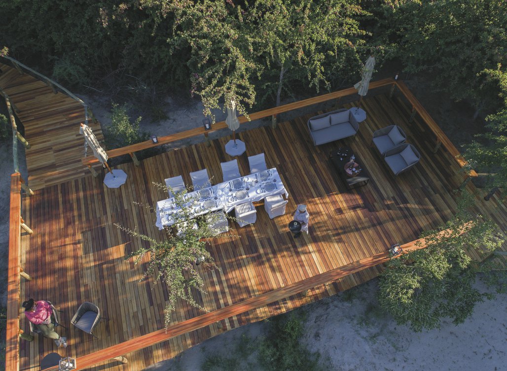 Der Hauptbereich von Dinaka erstreckt sich über erhöhte Plattformen und umfasst großzügige Sitz- und Essbereiche, eine gemütliche Bar sowie einen einladenden Pool – mit einem weiten Blick auf das nahegelegene Wasserloch, das regelmäßig Wildtiere anzieht. Im gesamten Reservat sorgen strategisch platzierte Verstecke und unterirdische Bunker an verschiedenen Wasserstellen für außergewöhnliche Möglichkeiten zur Wild- und Vogelbeobachtung – perfekt auch für Fotografen. Ein besonderes Highlight ist das Sleep Out Deck, das Gästen einen unvergesslichen Panoramablick und die einmalige Gelegenheit bietet, unter dem funkelnden afrikanischen Sternenhimmel zu übernachten. Eingeschlossene Aktivitäten: Wanderungen mit San-Buschmännern, Pirschfahrten.