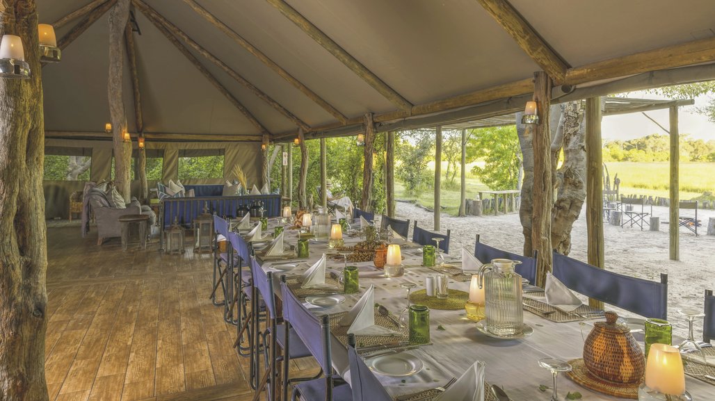 Das Camp liegt unter Schatten spendenden Bäumen mit Blick über den Khwai Fluss, der die natürliche Grenze zwischen dem Moremi Wildreservat und der Khwai Region bildet. Es bietet den Gästen die perfekte Basis, um die Tierwelt und Kultur dieses einzigartigen Lebensraums zu erkunden.