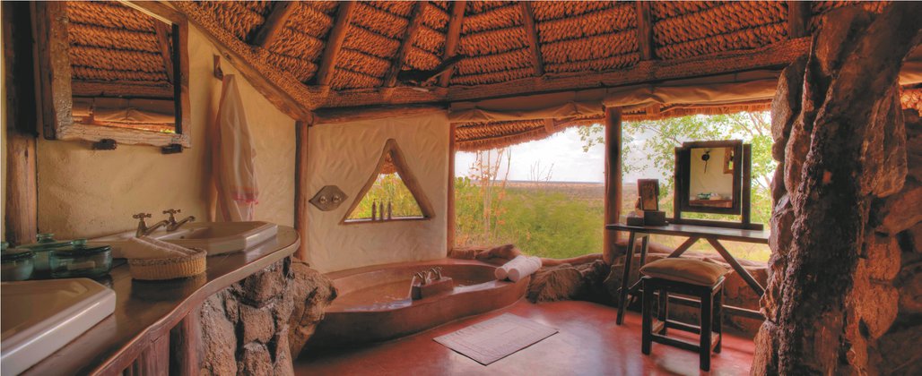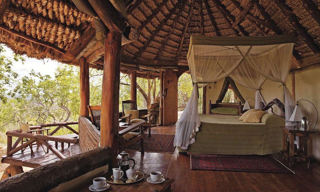 Auf dem Mughwango Hill mitten im Meru Nationalpark, ca. 380 km nördlich von Nairobi. Per Inlandsflug erreichen Sie die Kinna Flugpiste in ca. 1 Stunde. Von hier sind es noch ca. 45 Fahrminuten durch den Nationalpark zur Lodge. Die private Mughwango Flugpiste wird nur von Privatchartern bedient und es sind nur wenige Minuten bis zur Lodge. Ein Helikopterlandeplatz findet sich in direkter Nähe.
