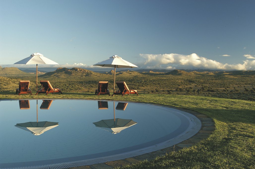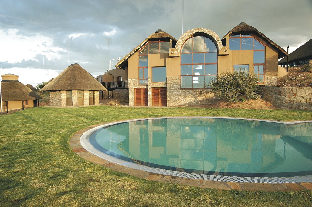 Rückflug zum Internationalen Flughafen von Windhoek, etwa 1,5 Stunden Transfer in das auf einem Plateau gelegene Wildschutzgebiet. Lassen Sie die Reise Revue passieren und genießen Sie die Aussicht.