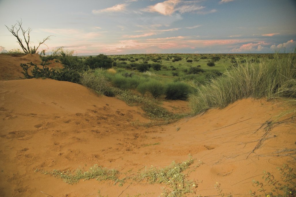 Übernahme des Mietwagens am Flughafen und Fahrt entlang Kameldornbaum gesäumter Straßen in die Kalahari. Sanft rollende, rote Dünen bilden die ersten grandiosen Fotomotive. Nehmen Sie optional am Abend an einer ersten geführten Panoramafahrt teil.