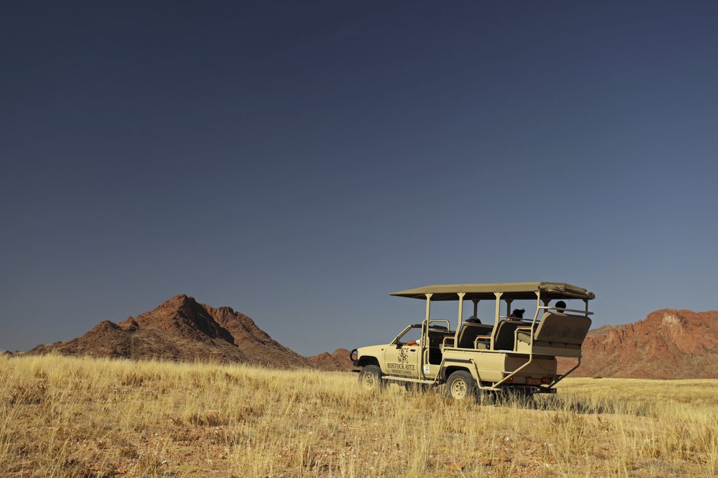 Genießen Sie die heutige Etappe entlang der Tirasberge bis zum Sossusvlei Gebiet. Sie sehen ein prächtiges Farbenspiel von rotem Dünensand, gelbem Gräsermeer und schroffen schwarzen Klippen. Genießen Sie am späten Nachmittag die untergehende Sonne von der Dachterrasse und im Anschluss ein in Namibia einzigartiges Grillbuffet unter freiem Himmel.