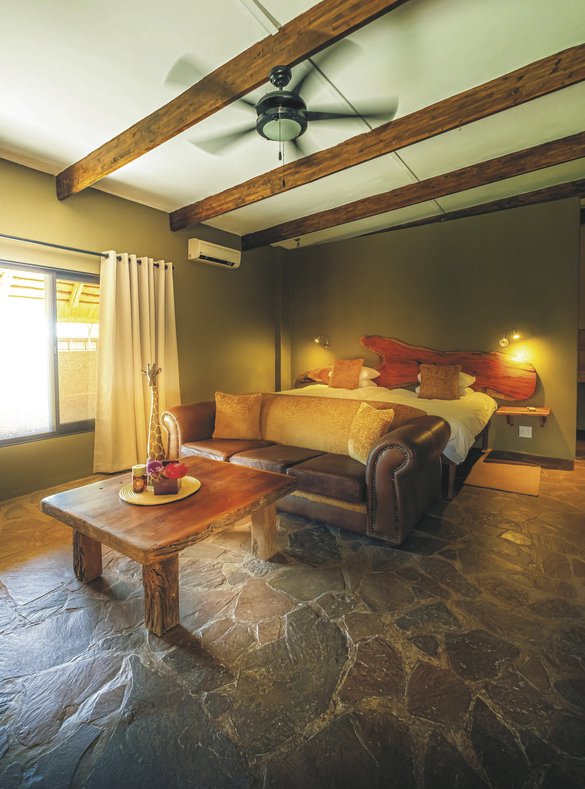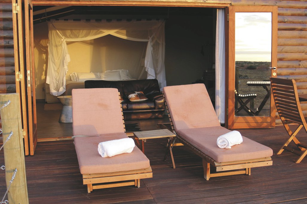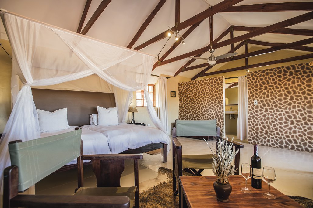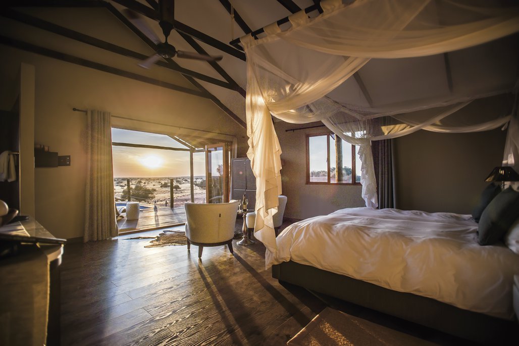 Die 4 großzügigen Dune Chalets mit atemberaubender Aussicht in die Kalahari liegen oben auf einer Dünen, ebenso die 2 Exclusive Chalets. Diese haben jedoch zusätzlich einen privaten Plunge Pool. Die 8 Savannah Chalets befinden sich im Tal zwischen den Dünen, 2 davon sind für Familien geeignet. Im Haupthaus befinden sich 6 kleinere Standardzimmer im afrikanischen Kolonialstil. Alle Zimmer und Chalets mit eigenem Bad, Klimaanlage, Ventilator, Fön, Moskitonetz, Safe, Minibar/Kühlschrank, Tee-/Kaffeezubereiter und Terrasse oder Balkon.