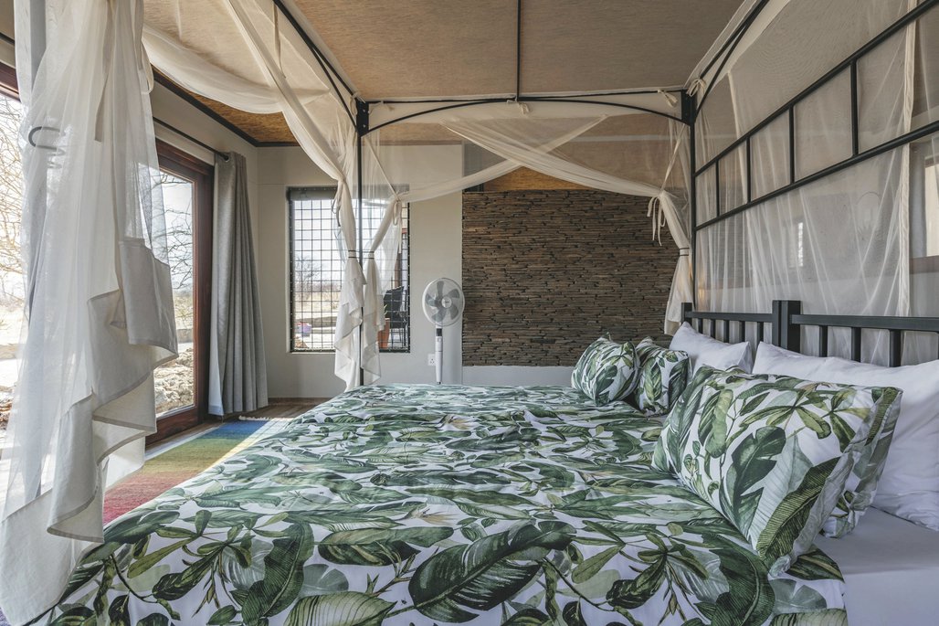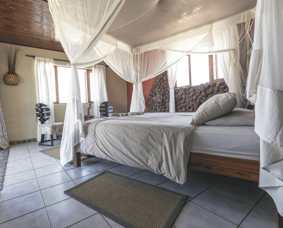 Es gibt 14 geräumige Standardzimmer mit eigenem Bad, Safe, Ventilator, Fön, Tee-/Kaffeezubereiter, Moskitonetz und schattiger Terrasse. Davon 2 Familienapartments, die mit 2 Schlaf- und Badezimmern für max. 4 Personen geeignet sind. Das Superior-Zimmer bietet viel Privatsphäre (ca. 300 m vom Haupthaus entfernt) mit spektakulärer Aussicht und gehobener Ausstattung, dazu zählt eine Klimaanlage, eine großzügige Lounge und eine Kitchenette.