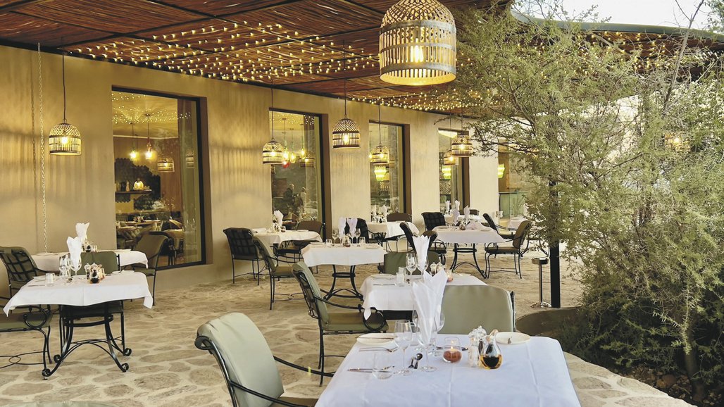 Die Lodge liegt dem höchsten Gipfel des Erongogebirges zu Füßen. Spektakuläre Sonnenuntergänge lassen den Berg in fantastischem roten Licht erscheinen. Im Haupthaus befinden sich das Restaurant und ein kombinierter Lounge-/Barbereich mit Kamin und kostenlosem WLAN. Die Terrasse bietet ein großartiges Panorama und Blick auf das nahe Wasserloch. Auf der Sonnenterrasse am Pool können Sie abschalten und entspannen. Am Abend lässt es sich an der flackernden Feuerstelle gut über die Ereignisse des Tages austauschen. Philipps Cave mit seinen Felsmalereien und die Granitformationen von Bulls Party befinden sich gleich auf der Nachbarfarm. Optionale Aktivitäten: geführte Wanderungen, markierte Wanderwege, Panoramafahrten, Besuch der Felsmalereien, Mountain-Bike Verleih.