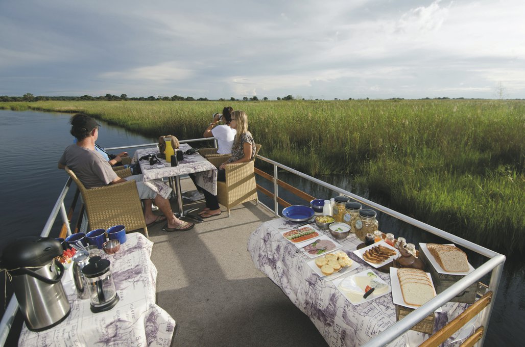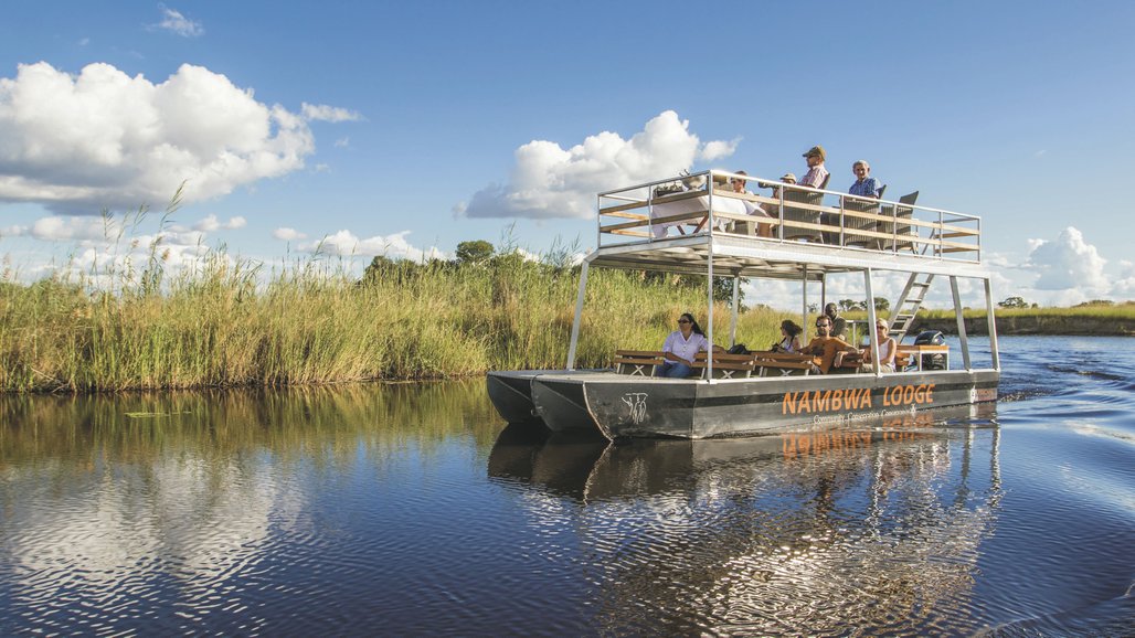 Die Lodge und ihre Schwester sind die einzigen Unterkünfte im Nationalpark, entsprechend exklusiv sind die Safari-Aktivitäten. Das Herzstück der Lodge ist die große Terrasse, wo die Mahlzeiten - zubereitet mit Gemüse aus den Sijwa Gärten - unter freiem Himmel serviert werden. Es gibt eine gemütliche Feuerstelle, eine elegante Lounge mit bequemen Sesseln und WLAN im Hauptbereich. Die ein oder andere Pirschfahrt ist schon ausgefallen, weil die Tierdichte im Camp so groß war, dass die Gäste gemütlich von der Terrasse oder einem der Stege das Geschehen beobachten konnten. Der Weg zum Essen dauert schon mal deutlich länger als geplant, weil es unterwegs etwas Interessantes am Boden zu beobachten gibt. Eingeschlossene Aktivitäten: Bootsausflüge, Buschwanderungen, Pirschfahrten. Nicht entgehen lassen sollten Sie sich den Besuch des Sijwa Projektes, welches als Ziel Nachhaltigkeit, Integration der lokalen Gemeinde in den Tourismus sowie Ressourcenschonung, Kulturerhaltung und Ausbildung von handwerklichen Fähigkeiten hat.