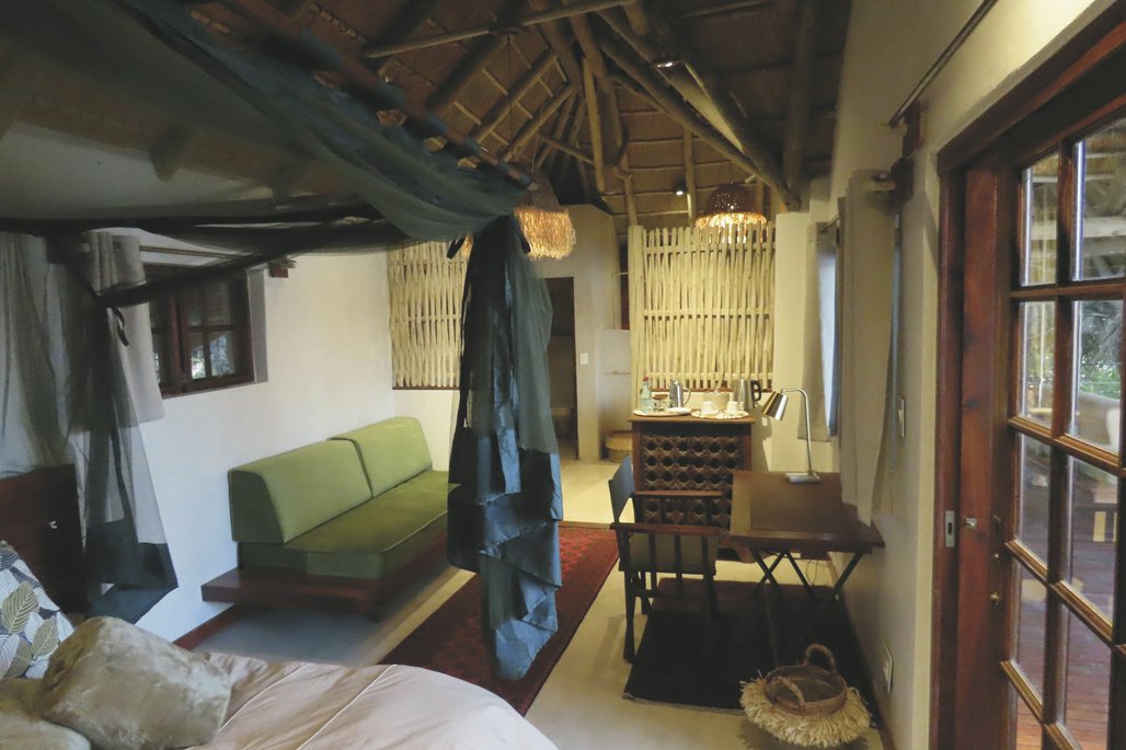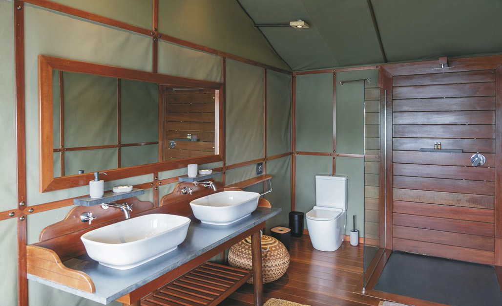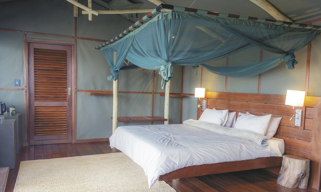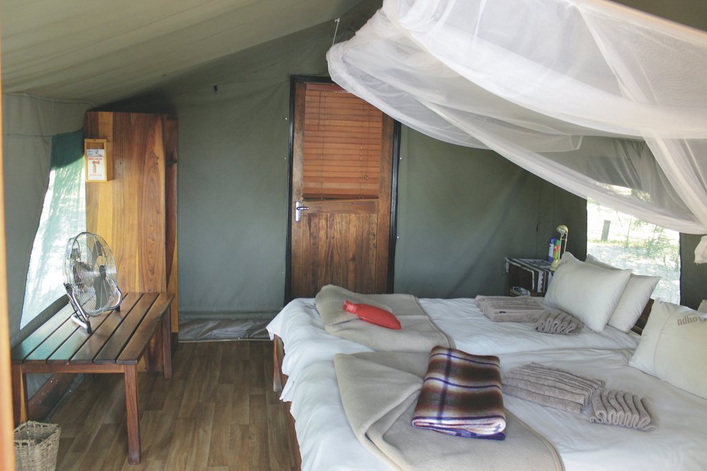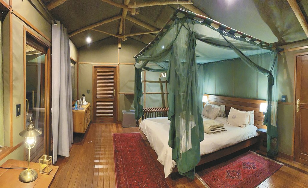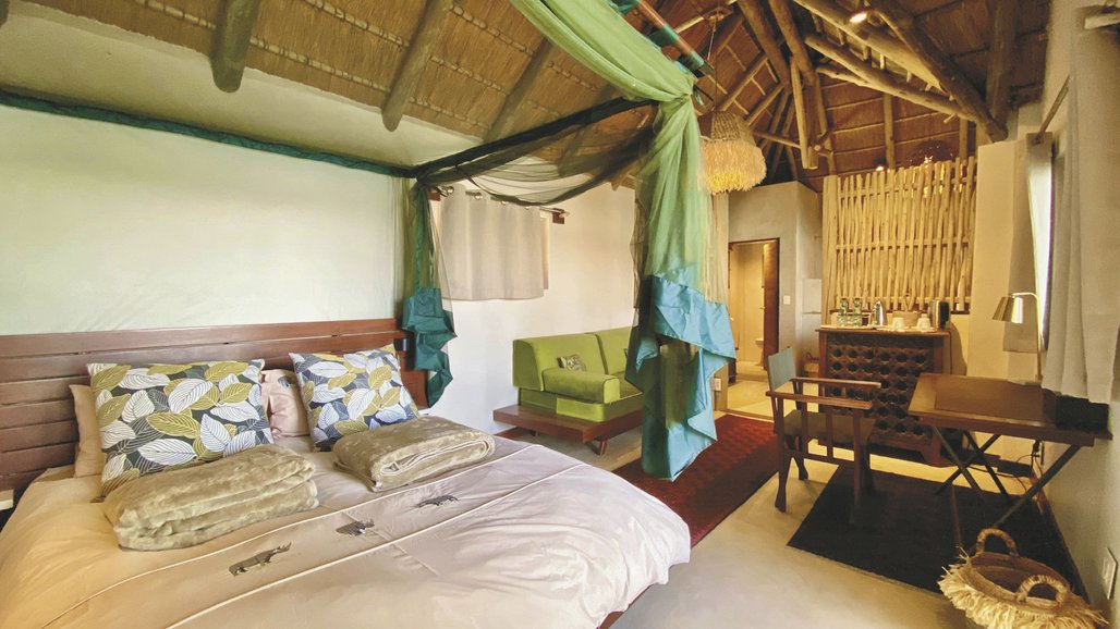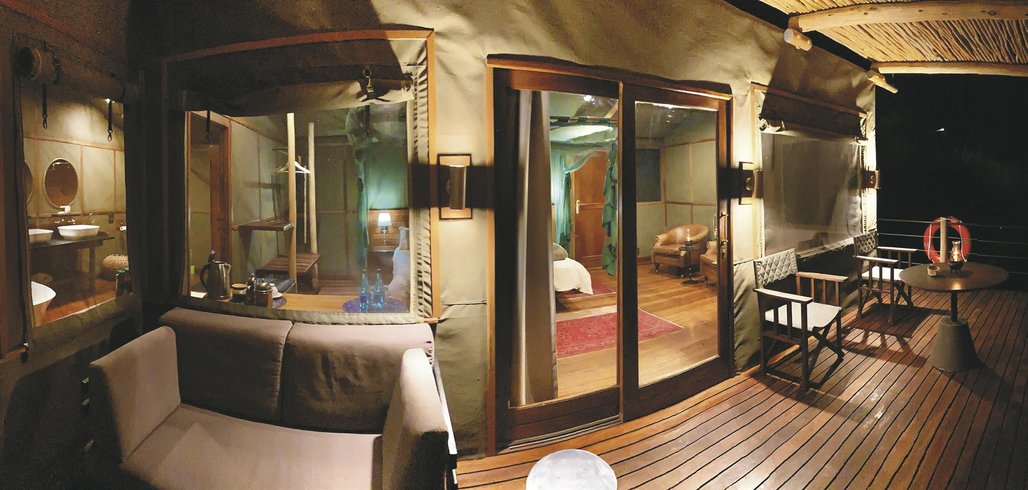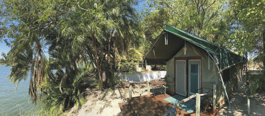 Es gibt 10 rustikale Safarizelte, die in der Gartenanlage verteilt liegen und Blick auf den lebensspendenden Fluss bieten. Sie verfügen über moderne Badezimmer, Moskitonetz, Tee-/Kaffeezubereiter, Ventilator und eine kleine Terrasse. Besonders romantisch sind die 2 River Suiten, die wie ein Hausboot auf dem Fluss liegen. Sie trumpfen mit einer einmalig exklusiven Lage und dem Gefühl, bei den Nilpferden im Wohnzimmer zu wohnen. Außerdem verfügen sie über eine gehobene Ausstattung mit Kühlschrank und einem Safe. Die 2 modernen Suiten an Land (Buffalo & Elephant) sind das perfekte Domizil für Familien oder gemeinsam reisende Freunde, da sie sich eine große, überdachte Terrasse mit Blick auf den Fluss teilen, aber ansonsten eigenständig sind. Für Familien, die ein bisschen mehr Nähe wünschen ist die neue Lion Suite die beste Unterkunft. Zwei Schlafzimmer, ein kleiner Loungebereich, eine schattige Terrasse, natürlich mit Flussblick und ein gemeinsames Badezimmer stehen zur Verfügung. Der Clou ist die Badewanne im Freien und der Sichtschutz, der per Knopfdruck den Blick von der Wanne auf den Fluss freigibt.