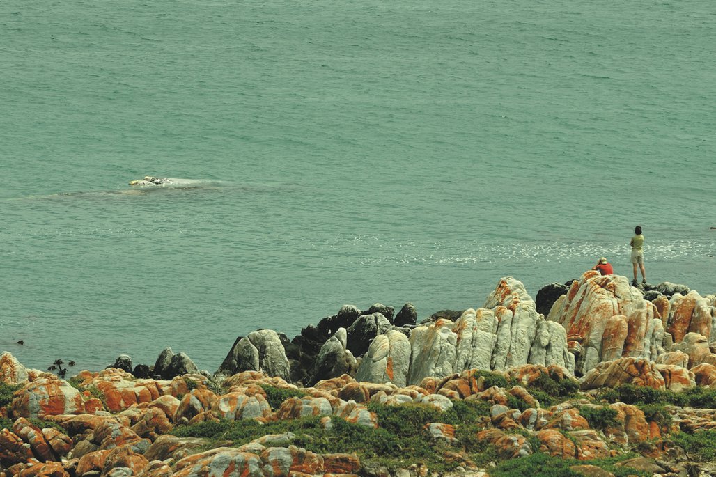 Entlang der N2 und durch die Overberge gelangen Sie an die Walker Bay, wo Sie von Mai bis Oktober Wale beobachten können. Unterwegs nehmen Sie an einer Weinprobe teil.