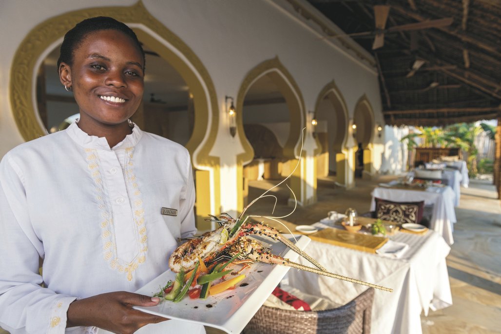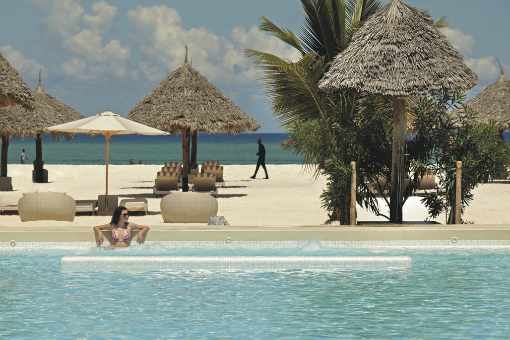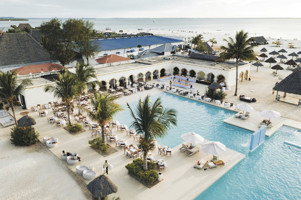 Das Gold Zanzibar Beach House & Spa vereint in seiner Architektur eine Mischung aus afrikanischen und arabischen Einflüssen in zeitgenössischer Umsetzung. Mehrere Bars und Restaurants mit Blick zum Sonnenuntergang, ein Spa in Form eines kleinen balinesischen Dorfes mit qualifizierten Therapeuten - all das locker verteilt in einer weitläufigen tropischen Anlage.