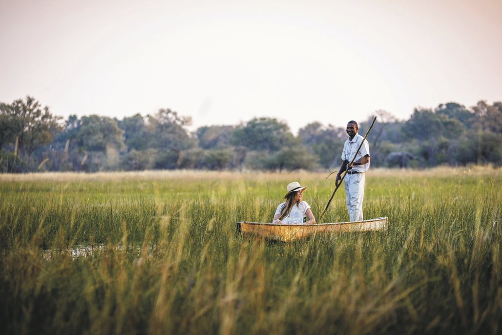 Ein ganzer Tag im Delta steht auf dem Programm. Zwei Aktivitäten sind eingeschlossen. Sie können wählen zwischen Pirschfahrten im offenen Safari-Fahrzeug, Buschspaziergängen oder einer Mokorofahrt.