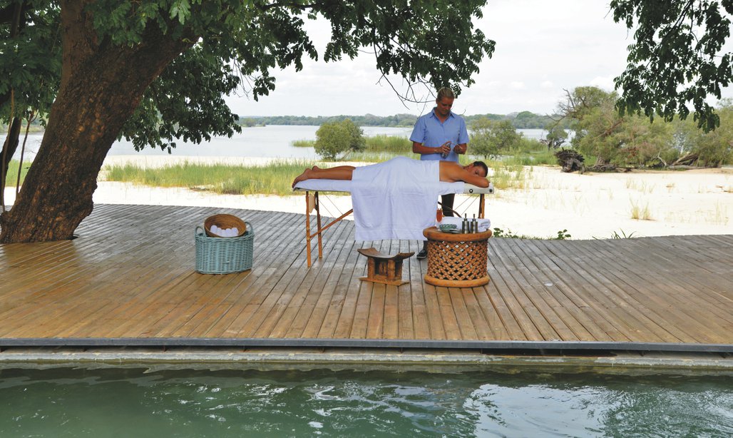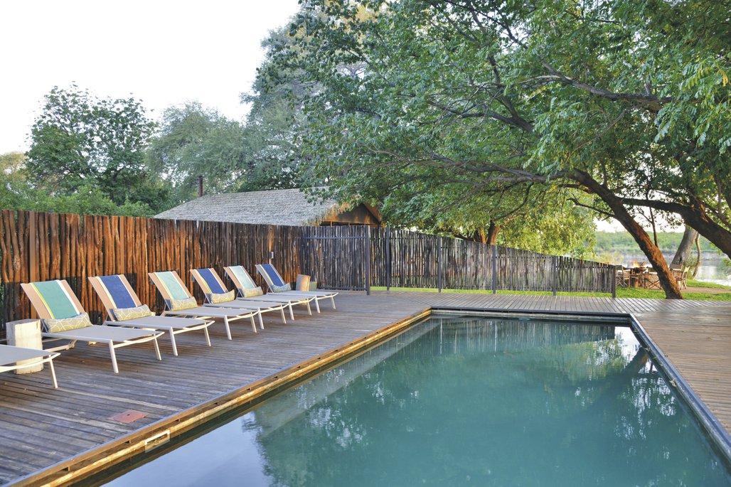 Die Lodge ist im Schatten majestätischer Auenbäume erbaut und fügt sich harmonisch in die Natur ein. Vom Hauptgebäude der Terrasse hat man einen fantastischen Blick auf den dahinfließenden Zambezi Fluss. Genießen Sie atemberaubende Sonnenuntergänge, Cocktails und entspannte Stunden am großen Pool mit Blick auf den Fluss. Eingeschlossene Aktivitäten: Unternehmen Sie Bootsfahrten, Kanufahrten und Buschwanderungen im Zambezi Nationalpark. Ebenso werden Pirschfahrten im Nationalpark angeboten und ein Transfer zu den Victoria Wasserfällen (exkl. Eintritt, derzeit USD 50). Ein Highlight bietet auch das "Fun Fishing".