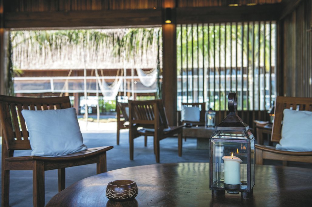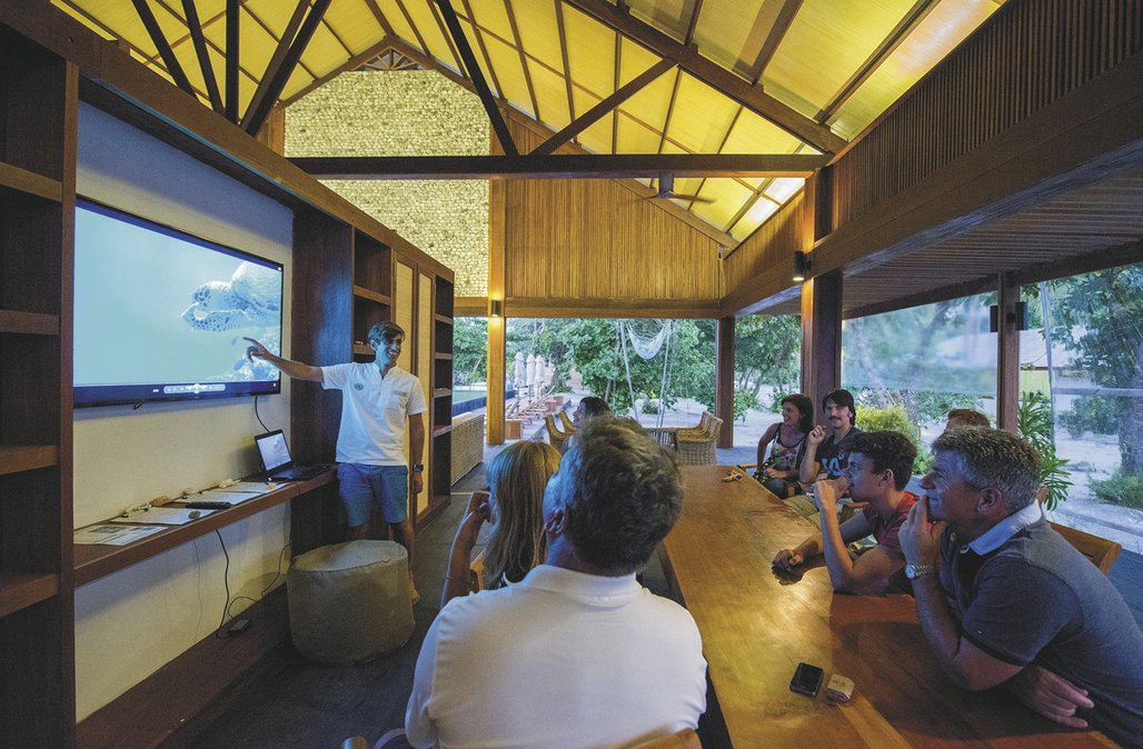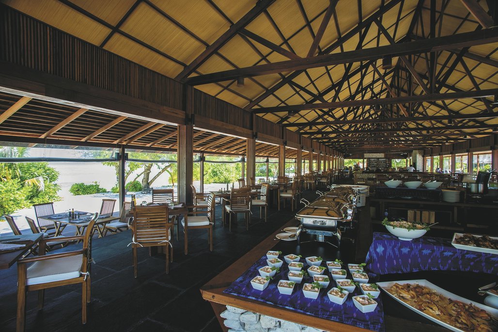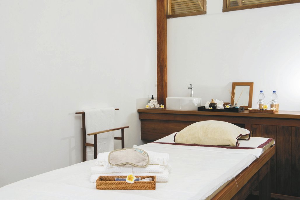 Der ökologische Aspekt spielt im Resort eine große Rolle, so wird der Strom durch Solarpanels erzeugt und das Meerwasser wird entsalzt. Im Restaurant wird der Fang von lokalen Fischern angeboten und Alkohol ist - wie auf der ganzen Insel - verboten, fast, denn der findige Besitzer hat ein altes Schiff restauriert, welches jetzt vorm Strand auf Anker liegt und als Lounge und Bar dient. Für die Gäste des Resorts gibt es außerdem ein Spa, ein Fitnesscenter, eine Boutique, ein Tauchzentrum und Ausflüge über die Insel.