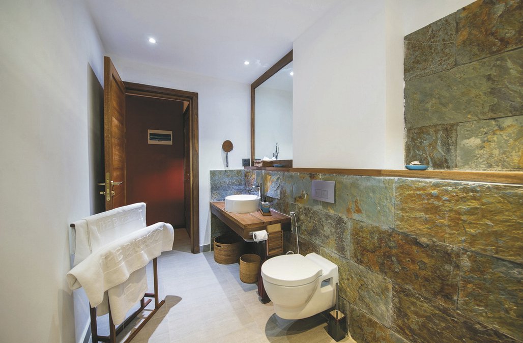 Die 40 Zimmer am Strand (Erdgeschoss) oder mit Meerblick (Obergeschoss) sind je ca. 50m² groß und verfügen über Terrasse oder Balkon. Ausgestattet sind sie mit Klimaanlage, Bad mit DU/WC, Fön, Strandtüchern, Telefon, Safe, Tee-/Kaffeezubereiter, Minibar (gegen Gebühr) und WLAN.