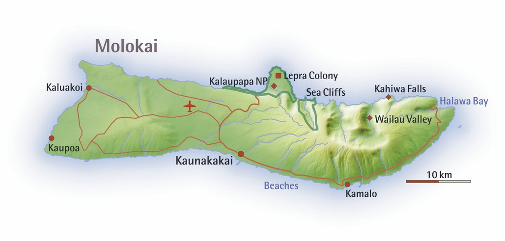 Sie reiten auf dem Maulesel zur Halbinsel Kalaupapa. Der Weg führt über steile Klippen in eine fantastische Landschaft. Dies ist der natürliche Lebensraum von mehreren seltsamen, einheimischen Tier- und Pflanzensorten. Die Aussicht vom 5 km langen Weg mit 26 Kurven ist fantastisch! Auf Kalaupapa besichtigen Sie die einstige Lepra-Kolonie des belgischen Pater Damian. Hier lebten die Kranken von der Welt getrennt. Sie hören die Geschichten der Leute, vom Leiden und dem unglaublichen Engagement der Pflegekräfte. Sie sehen die Kirche und den Friedhof sowie die steilen Klippen und Felsformationen dieses abgelegenen Ortes.