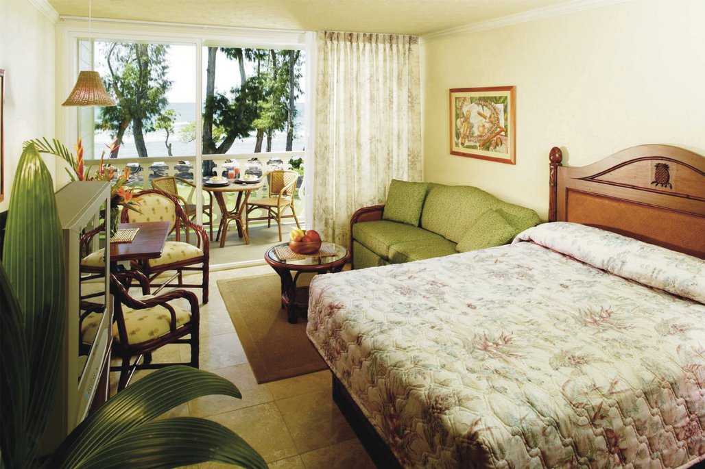 Die Zimmer sind komfortabel eingerichtet, haben ein Badezimmer, Klimaanlage, Zimmersafe, TV, Kühlschrank, Tee-/Kaffeezubereiter und Lanai.