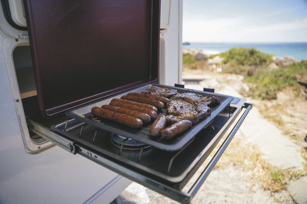 - Gaskocher innen sowie zusätzlich außen ausziehbarer Gaskocher