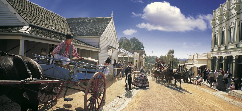 Heute fahren Sie weiter nach Ballarat. Hier können Sie sich in Australiens renommiertestem Freilichtmuseum Sovereign Hill auf eine Zeitreise ins 19. Jahrhundert begeben (optional, täglich geöffnet 10.00-17.00 Uhr). Eine Straße, Läden, Hotels und eine Schule sind im Stil des neunzehnten Jahrhunderts eingerichtet. Laienschauspieler inszenieren die Zeit des Goldrausches, als Tausende Abenteurer Ballarat zur schillernden Metropole machten. Ihr wunderschön renoviertes Hotel stammt aus dieser Zeit.