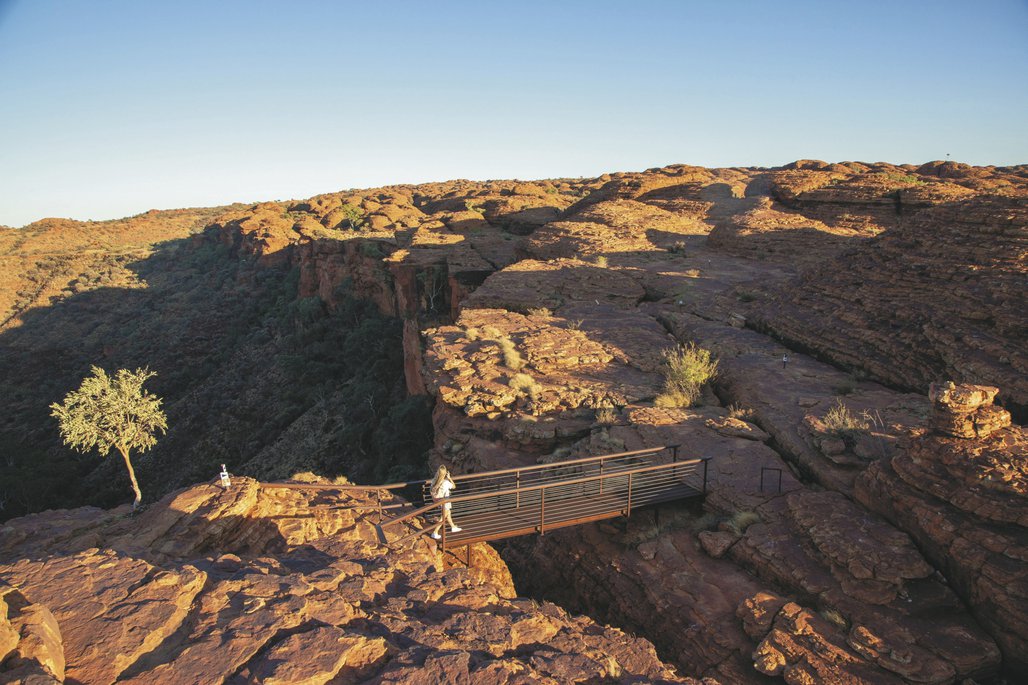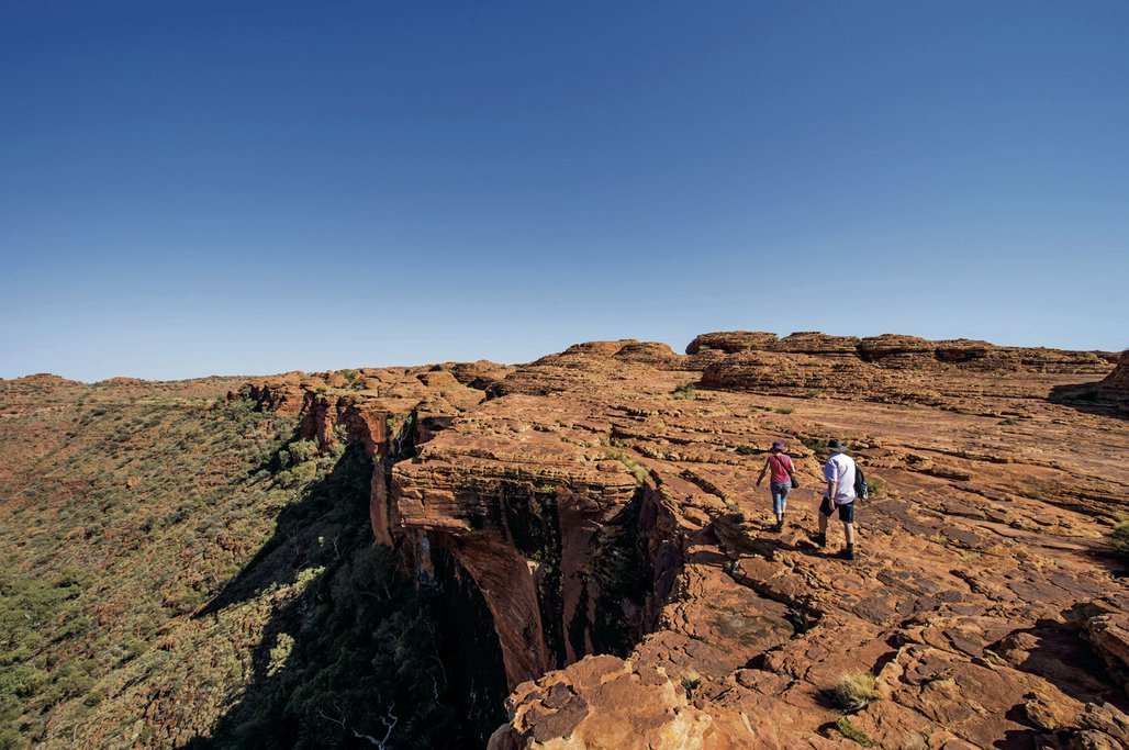Ihr Resort liegt nur 7 Kilometer vom Eingang zum Watarrka-Nationalpark entfernt. Dort erwartet Sie die unvergessliche Landschaft des Kings Canyon: Steile Felswände ragen imposant über dichte Palmenwälder empor. Erkunden Sie den Canyon wahlweise bei einer morgendlichen Wanderung auf dem oberen Felsplateau oder während eines Spazierganges auf dem Grund der Schlucht. Auf asphaltierten Straßen gelangen Sie später zum Yulara Resort, wo Sie die kommenden beiden Nächte wohnen.