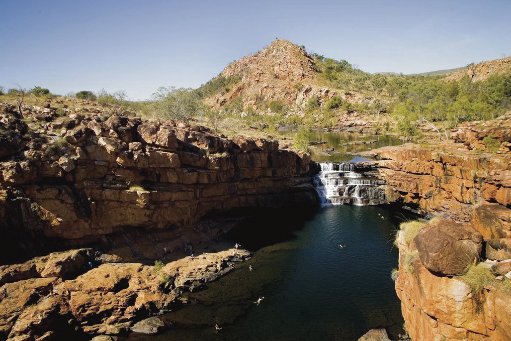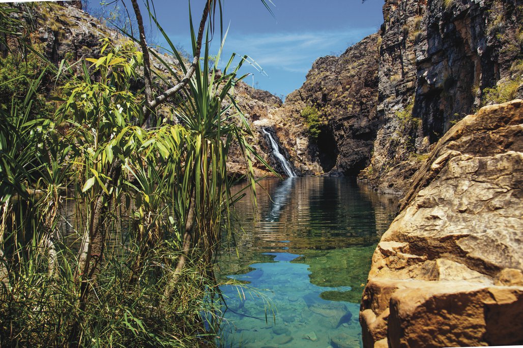 Wenn Sie Lust auf einen Abstecher haben, führt Sie eine holprige Stichstraße und ein 1 km langer Spaziergang zur etwas weniger bekannten Maguk Gorge (auch bekannt als Barramundi Gorge). Hoch aufragende Sandsteinfelsen und eine schöne Bademöglichkeit bei den meist ganzjährig sprudelnden Maguk Falls erwarten Sie! Auf der Weiterfahrt nach Katherine laden die Edith Falls zu einem weiteren Badestopp ein.