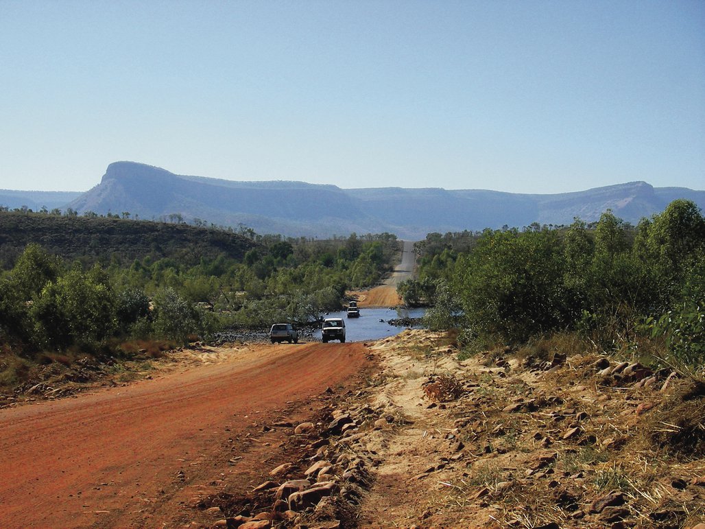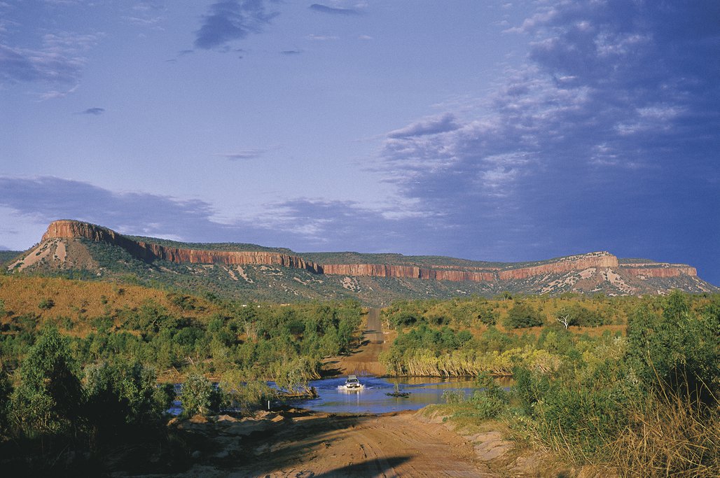 Sie folgen der Gibb River Road entlang der gewaltigen Cockburn Range und überqueren die in der Trockenzeit wenig Wasser führenden Pentecost und Durack River.