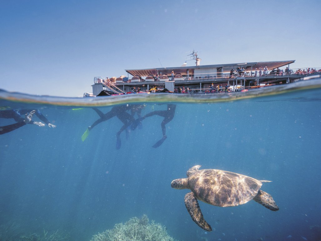 Sie erwachen mit Blick auf das Riff. Nutzen Sie die Gelegenheit das Riff fast alleine zu erkunden, bevor die Tagesgäste ankommen. Freier Zugang zum Unterwasser-Observatorium und Sonnendeck. Machen Sie einen Helikopterrundflug zum Heart Reef und nutzen Sie die Annehmlichkeiten der Riffplattform.