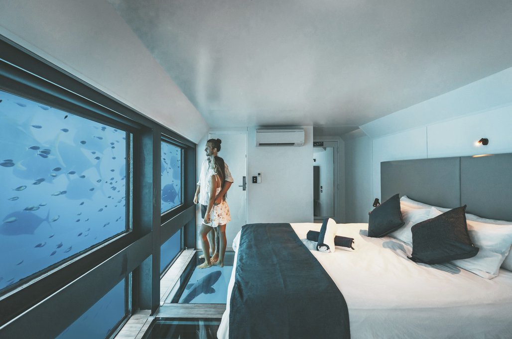 - Unterkunft nach Wahl: Doppelzimmer unter Wasser o. Swag an Deck