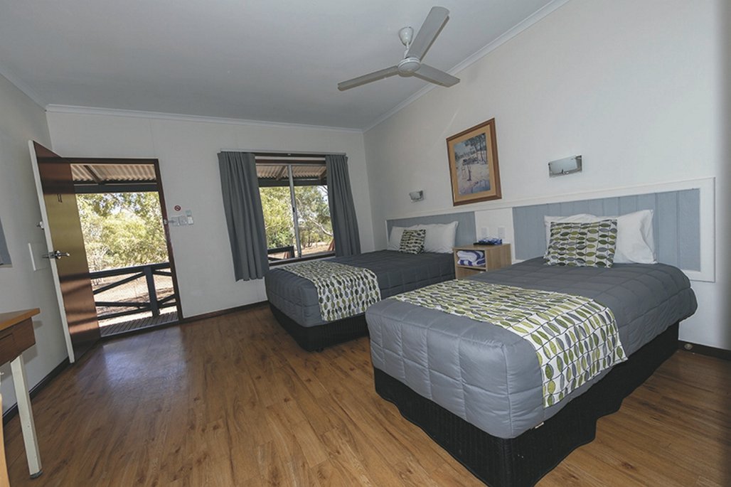 100 Wohneinheiten verschiedener Kategorien. Darunter zweckmäßig eingerichtete Motelzimmer mit Klimaanlage und Bad/WC, Studios mit mehr Privatsphäre und Blick von der Terrasse auf den mächtigen Fitzroy River sowie Apartments mit Wohn-/Essbereich, Küche und Waschmaschine.