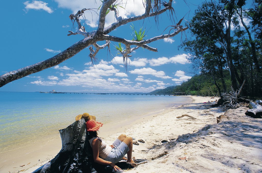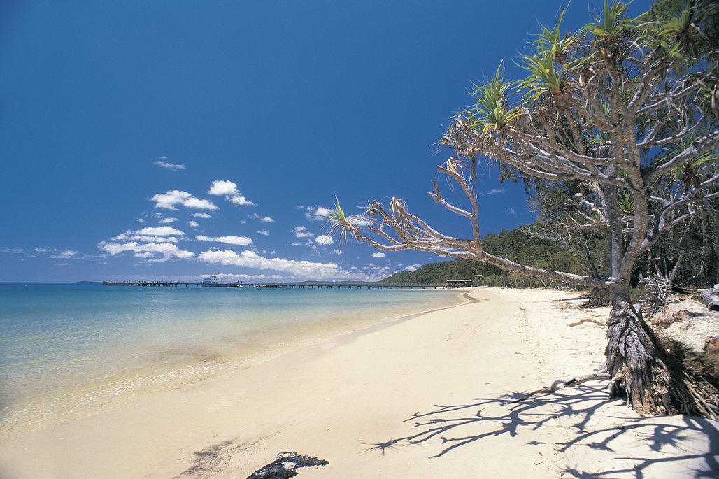 Auf der zum Weltnaturerbe zählenden, größten Sandinsel der Welt können Sie farbige Sandklippen erkunden, im Regenwald wandern, einheimische Tiere und Wale beobachten und in klaren Süßwasserseen baden.