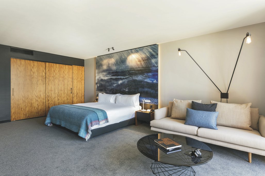 Das moderne, ungewöhnliche Hotel ist inspiriert vom lokalen Charakter und lädt ein zu einer Zeitreise durch Tasmanien. Das Design von Rezeption, Lobby, Bar und Restaurant spiegelt jeweils ein besonderes Stück Tasmanischer Geschichte wider. Die Lounge mit Sitzgruppe um den offenen Kamin ist z.B. eine Hommage an das Mouheenenner-Volk und seine Kultur. Kulinarisch verwöhnt wird man im Restaurant, darüber hinaus gibt es eine Bar, einen Fitnessraum und kostenfreies WLAN.