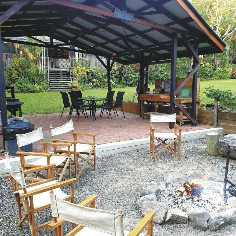 Die Lodge und Gästebungalow liegen in einem tropischen, gepflegten Garten. Im rustikalen Haupthaus gibt es eine gemütliche Lounge. Hier werden das optionale Frühstück, Getränke, Snacks und Mikrowellen-Mahlzeiten angeboten. Weiterhin steht den Gästen ein BBQ-Pavillion mit Grill und ein einladender Pool zur Verfügung. Abendessen kann man im Lions Den Hotel, ca. 5 Fahrminuten entfernt.
