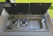 - 76 l Frisch- und 79 l Abwassertank 2-flammiger Gasherd